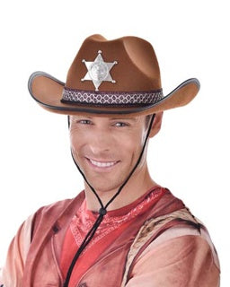 View full detailsSaddle up in true western style. This brown felt cowboy hat features a bold gold sheriff badge, ready to round up attention at any party or festiva...