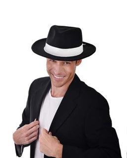 View full detailsGangster Hat Black Fedora with white band Adult size One size fits most Purchase in Store or Online. Return / Refund Terms and Conditions