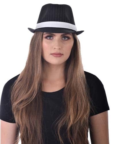 Gangster Hat Black Fedora with white band Adult size One size fits most  Purchase in Store or Online. Return / Refund Terms and Conditions
