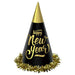 Happy New Year Black & Gold Foil Cone Hats 23cm 24 Pack - Buy Online Only