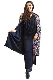 View full detailsTurn heads (and maybe raise a few spirits) with this vibrant Day of the Dead cape! Lined with colorful sugar skulls, it's the perfect dramatic flai...