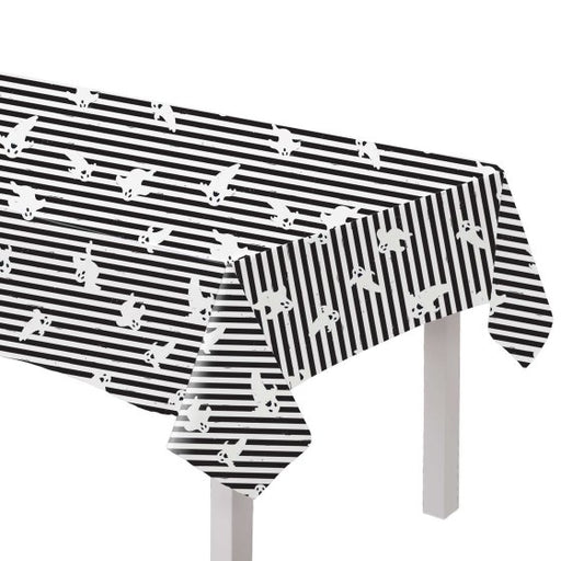 View full detailsGive your party table a frightful makeover with the Fright Night Halloween Tablecover. Featuring bold black and white stripes with floating white g...